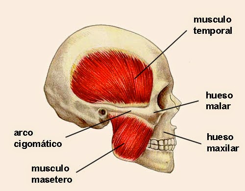 - Temporal: Apófisis coronoides del maxilar inferior al temporal. Eleva la mandíbula inferior.